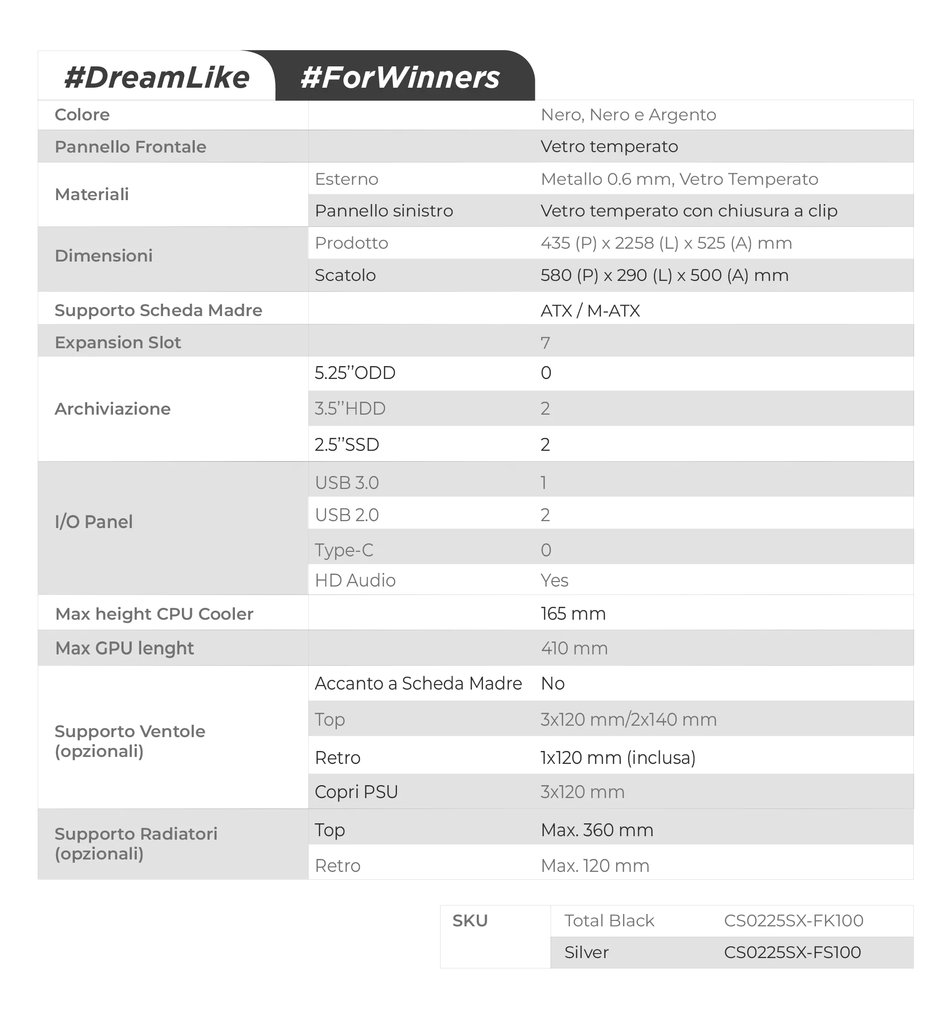 CASE NOUA UTOPIA FS100 SILVER 0.60MM SPCC 3*U3 FAN ARGB SIDE GLA