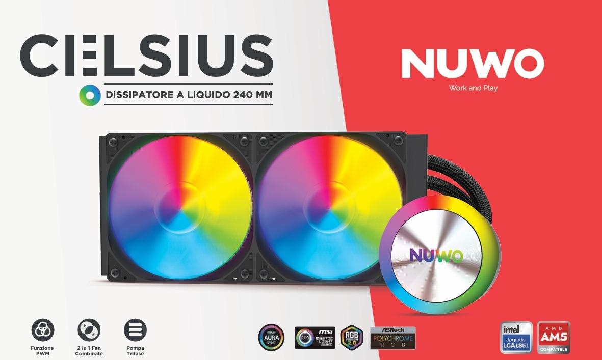 DISSIPATORE CPU NUWO LIQUID CELSIUS 240MM ARGB 2*120MM